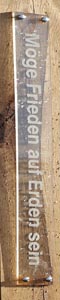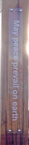 contains the message ‘May Peace Prevail On Earth’ in four languages: English, German, Japanese and Arabic. It is situated